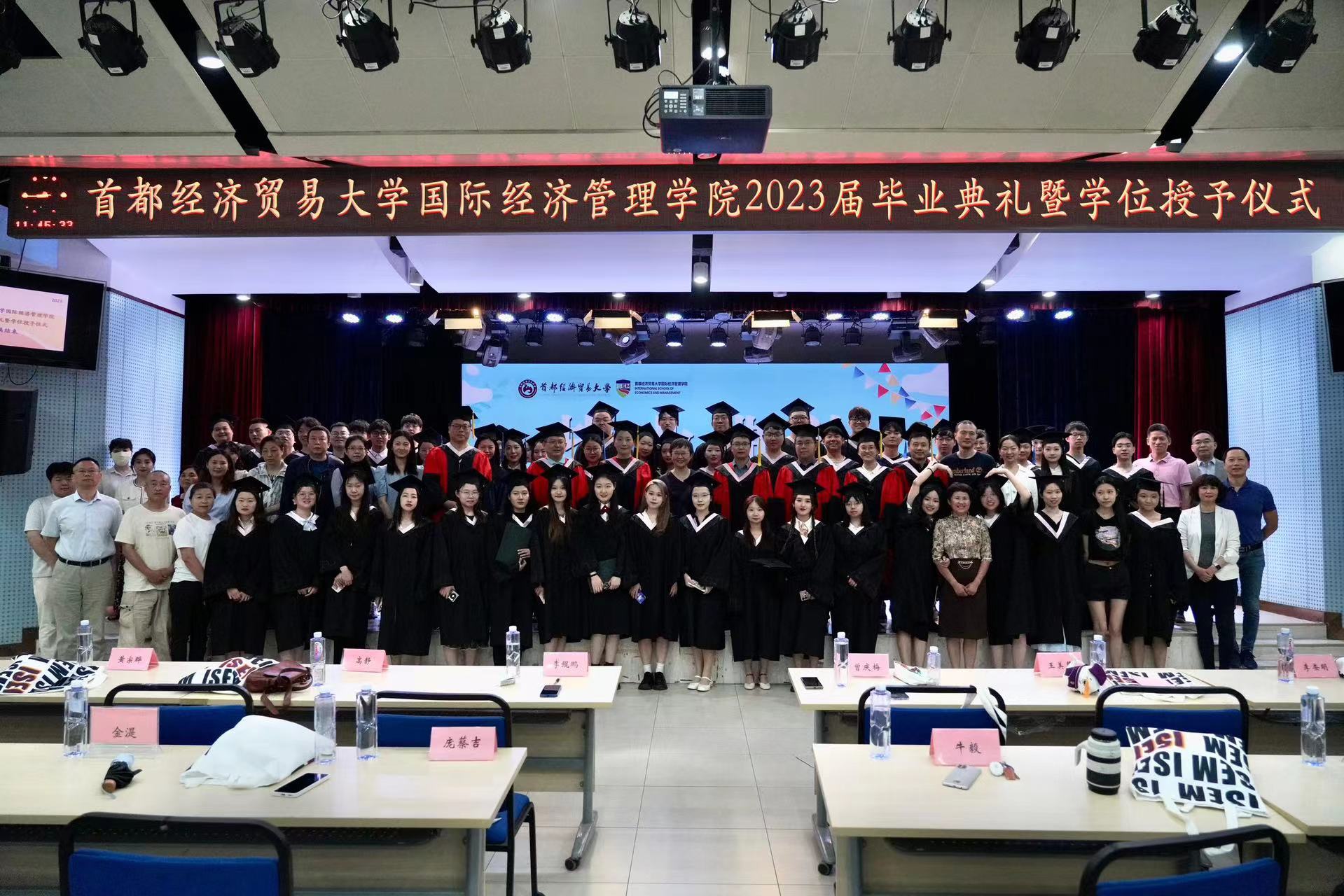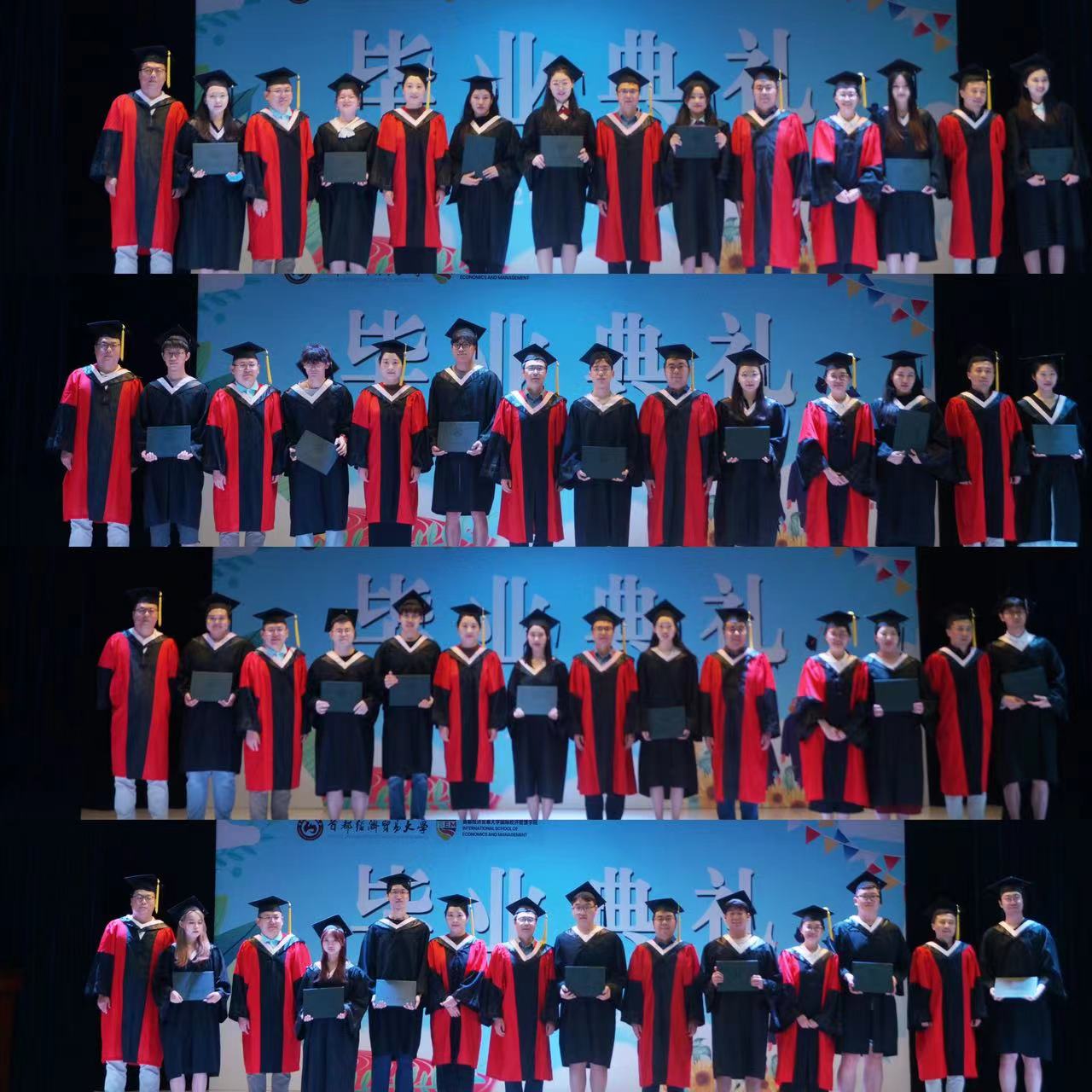 典礼在观看回忆视频中拉开帷幕,毕业生们再度感受彼此携手走过的岁月。时光荏苒,转眼间毕业生们已走过美好而充实的首经贸求学生活,准备好带着梦想奔赴新的远方。