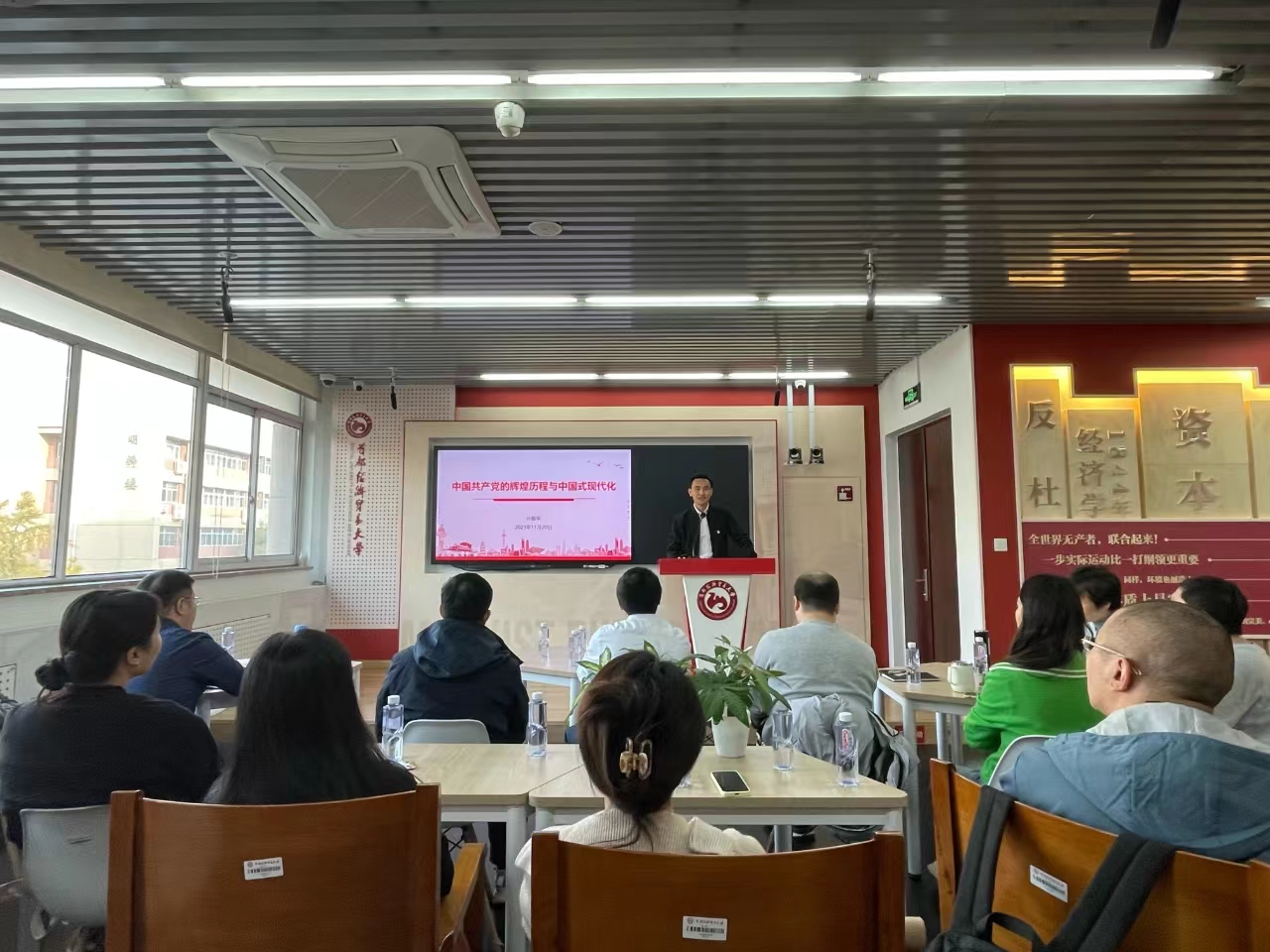 2023年11月20日,新澳门论坛 教师党支部邀请北京师范大学马克思主义新澳门论坛 党委书记亓振华同志来到我校,以“中国共产党的辉煌历史与中国式现代化”为题做专题讲座。新澳门论坛 党总支理论学习中心组、新澳门论坛 教师党员和入党积极分子以及学生党支部书记参加学习。