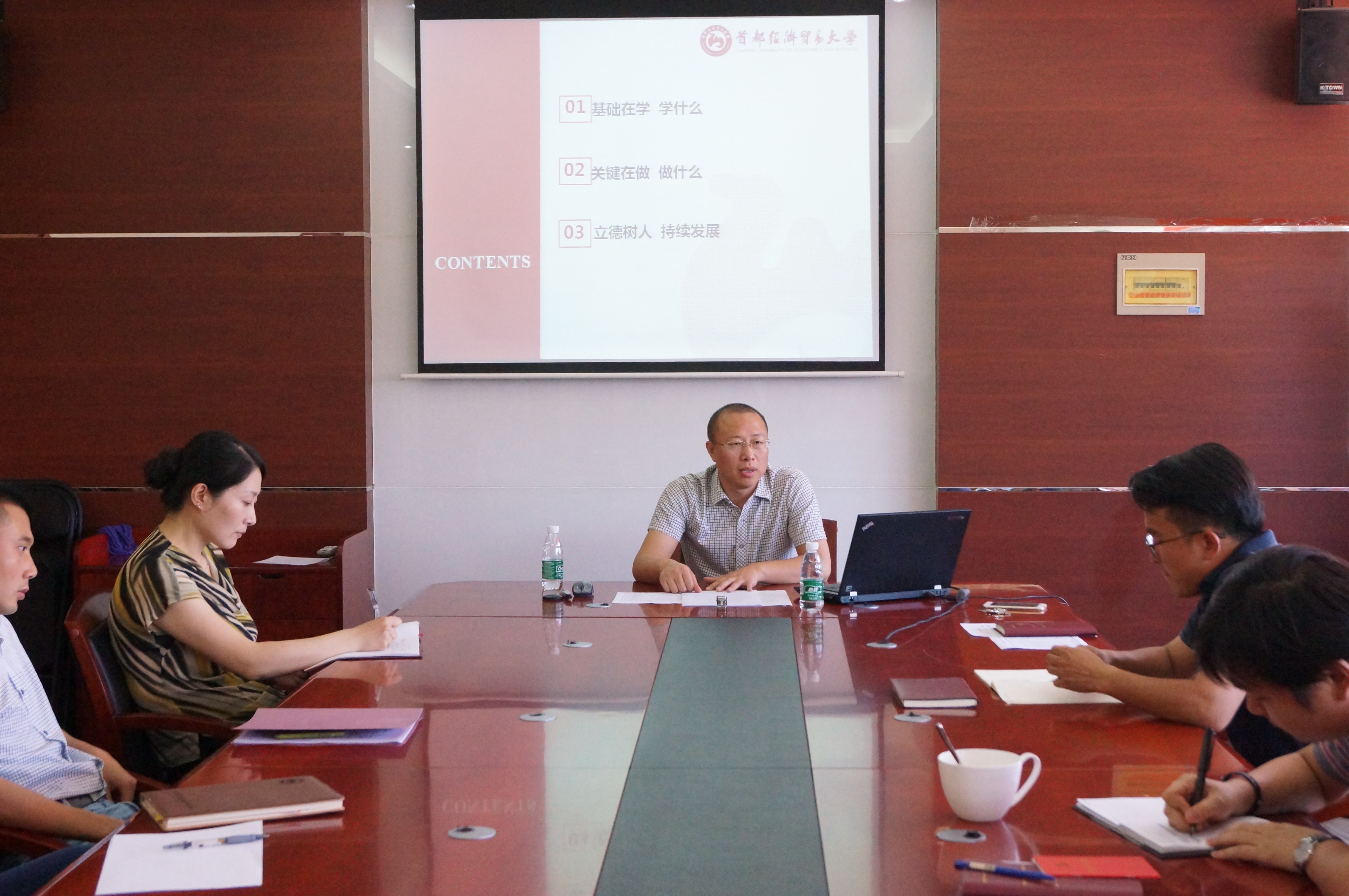 接下来,刘书记介绍了我国“十三五”规划中强调的“创新、协调、绿色、开放、共享”的五大发展理念,这是关系我国发展全局的一场深刻变革。随后,刘书记着重介绍了学校“十三五”规划和发展目标:立足北京、服务社会,把学校建设成为现代化、国际化、多科性、特色鲜明的国内一流、国际知名的财经大学,为融入国家建设“世界一流大学和一流学科”战略奠定基础。具体到我院自身的建设与发展,刘书记在课上总结了我们新澳门论坛