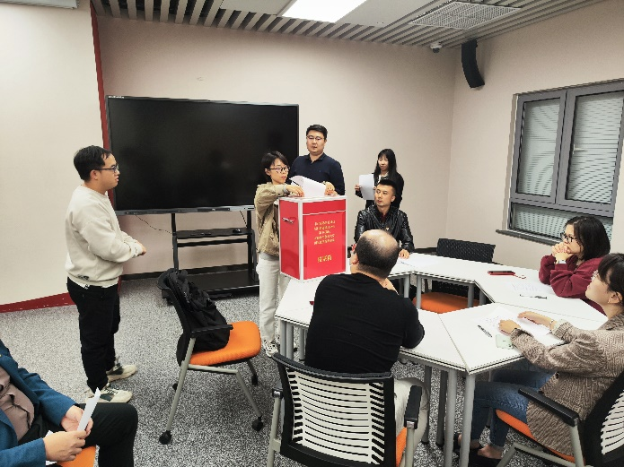 2023年10月25日,新澳门论坛 教师党支部在博远楼“党员之家”召开支部党员大会,讨论王峥同志按期转正事宜。会议由教师党支部书记牛毅主持。本次大会应到党员25人,其中正式党员23人,实到有选举权的正式党员15人。