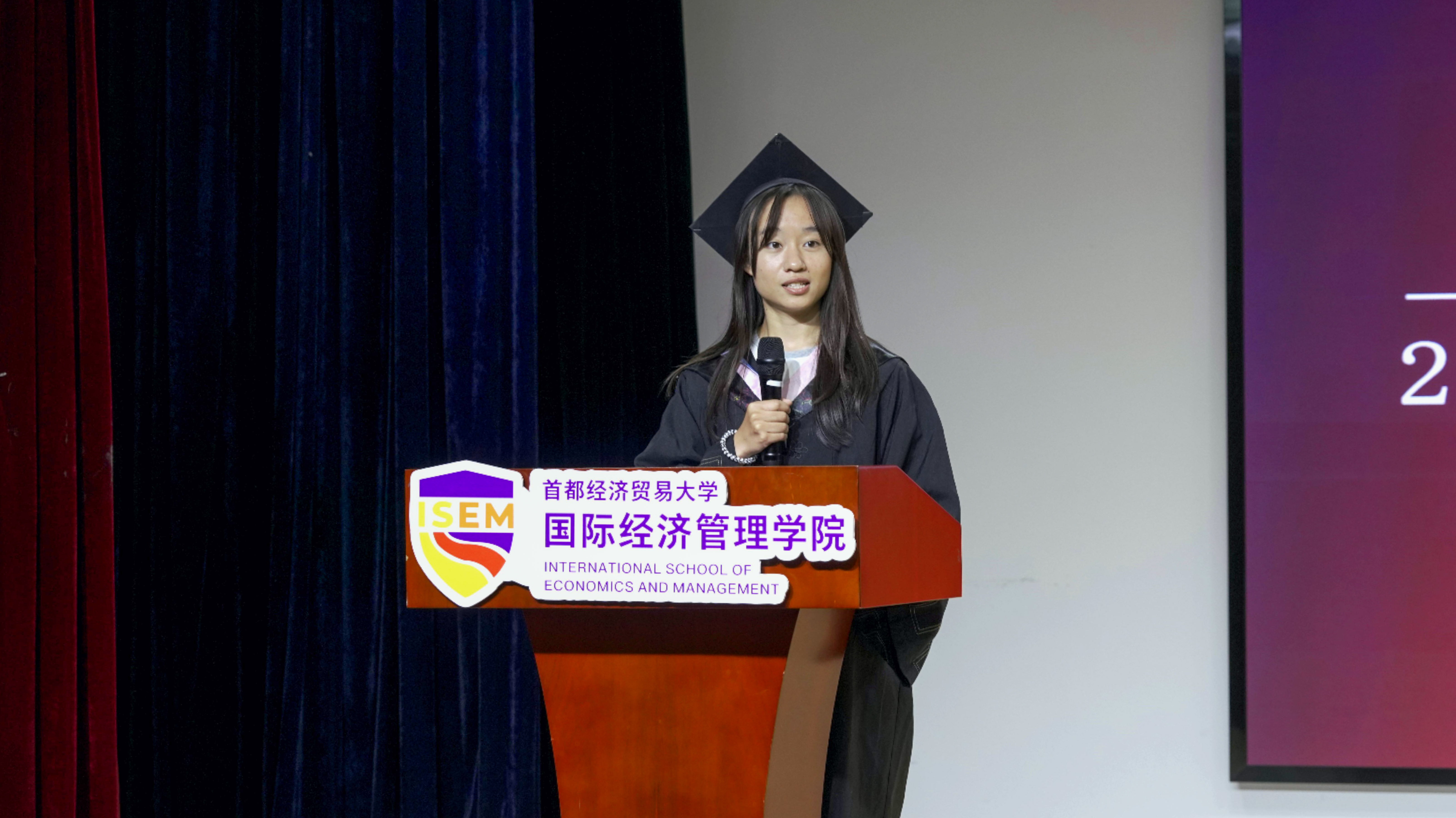本科毕业生郭媛、研究生毕业生贾若琦作为优秀毕业生代表发言。她们表达了对母校和新澳门论坛 真挚的感谢和深情的祝福。她们共同回顾了丰富多彩的校园生活,并期待全体毕业生带着学校和新澳门论坛 赋予的智慧、视野和力量,奔赴不同的领域持续绽放光芒,不负新澳门论坛 期待。
