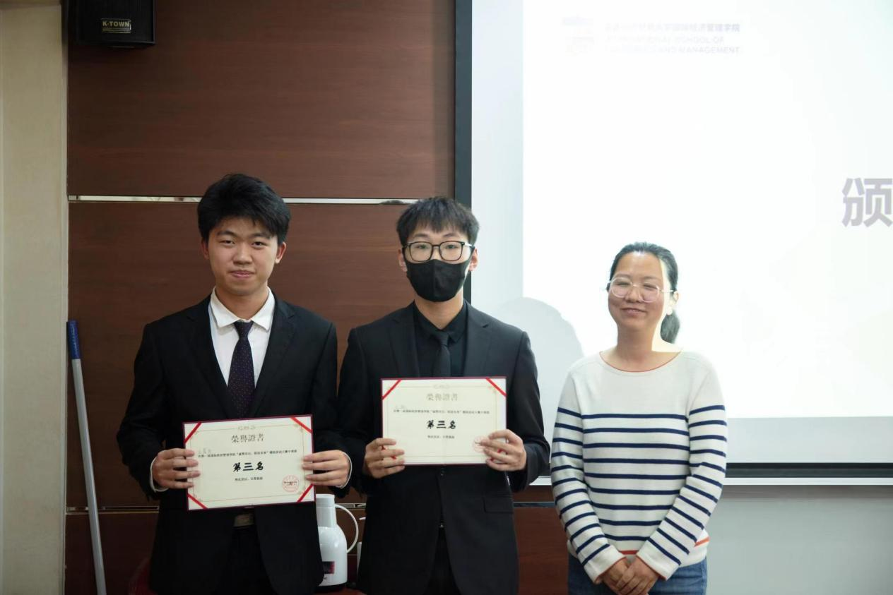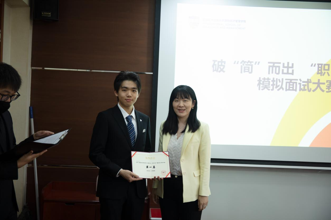 最后经过众评委打分评选,王冠杰凭借其实力脱颖而出,荣获本次模拟面试大赛的第一名。杨静获得大赛二等奖,王骁、方晨宇获得三等奖。经过参赛选手们的努力与学生会的统筹安排,本次“破‘简’而出,‘职’面未来”模拟面试大赛在热烈的掌声中圆满结束。