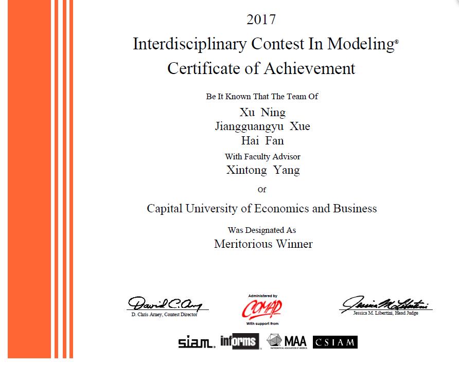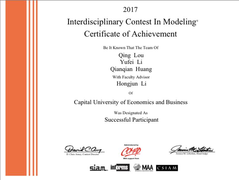 近日2017年美国大学生数学建模竞赛(MCM/ICM)成绩正式公布。我院共有五组同学成功参加了竞赛。在我院李红军、林蔚、杨欣桐三位老师的指导下,新澳门论坛