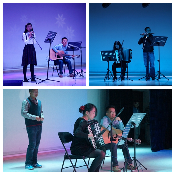 的教师们也一展风采,用歌声与舞蹈表达着对新同学们到来的欢迎。由金湜老师和苏立老师带来的《哪些花儿》和《执迷不悔》吉他弹唱律动着青春的音韵,拨人心弦;雷露老师和徐敬尧老师带来的《梁祝》诉说着委婉漂泊的神话故事;高静老师弹奏的肖邦《幻想即兴曲》演绎了起伏跌宕的天籁之音;高静老师、张婷婷老师、苏力老师与郭麟枫同学共同演绎的《贝加尔湖畔》为在场观众描绘了一幅月色下、湖畔边的浪漫立体画;沈牧龄老师带来的肚皮舞《Ojos Asy》则时而优雅神秘、时而妩媚娇柔;所有的节目在尚英老师风趣幽默的主持下,灵动活泼,让台下观众耳目一新,掌声连连。