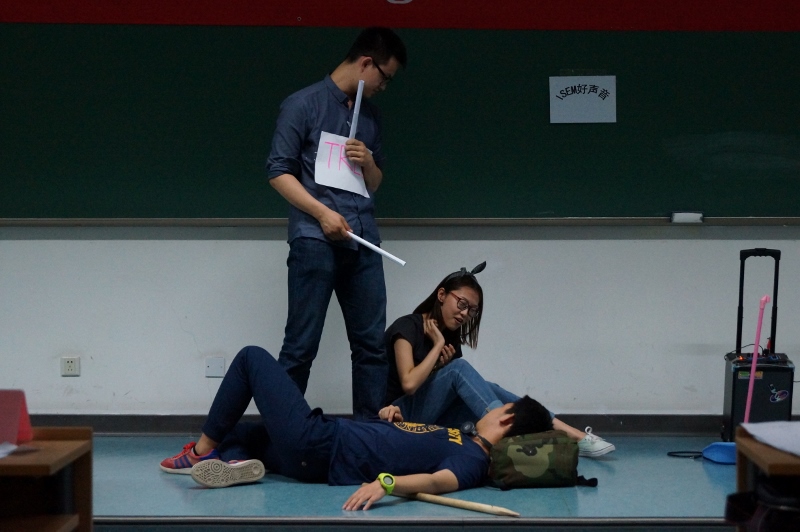 比赛由罗真苏淼小组的《A Singer's Life》拉开帷幕,一个心怀激情的男孩的追梦之旅带给大家阵阵欢笑。第二组《A Rob》中张岳曦表现出色,在面对李一帆颤抖的枪口时表现的恐惧和语气将一个被抢劫的女子演绎的淋漓尽致,章巧妮演绎的病人也很出色,结局让所有人都大吃一惊,台下的叹息的声音不绝于耳。第四组《Rick》可能是练习最少的小组之一,没有排练,只有一点点串词,道具也都是仓促决定的,不过他们拿出了很高的效率,老板如同黑社会一般的上台更是引发了一阵哄笑。第七组的《The Death of Jing Ke》演绎得到了最高分,中间台上陈好和段皓篮一段“打戏”十分优美好看。其他的小组也都为在场的观众献上了最精彩有魅力的表演,引得评委老师们阵阵好评。