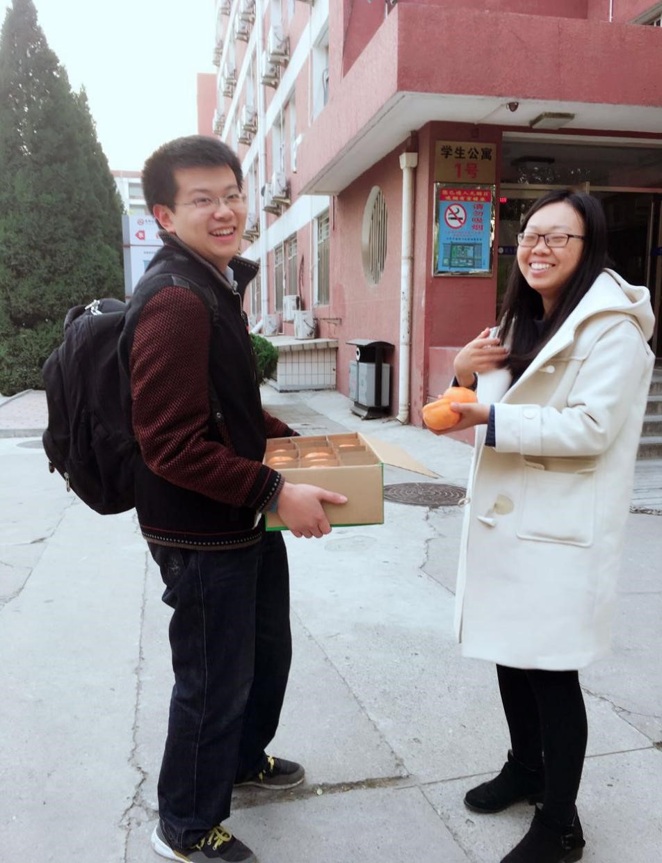 “幽姿不入少年场。无语只凄凉。一个飘零身世,十分冷淡心肠。” 11月11日俗称光棍节,加之同学们经历了三门期中考试的洗礼,孑然一身,孤独与凄凉。本周五,新澳门论坛 李劭琛师兄和夏晓佳师姐代表新澳门论坛 和研会给研一同学们带去了来自新澳门论坛 的中期慰问。 这次的慰问品是两箱柿子,秋冬吃柿子可以清热止血,中医有云柿霜润肺,多吃柿子也有助于对抗雾霾。师兄师姐把柿子送到了宿舍,并关切的询问了同学们的学习和生活情况。大家表示虽然柿子是凉性水果,但握在手里,竟感受到浓浓的温暖。
