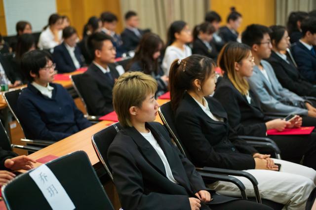 10月13日傍晚,新澳门论坛 于博远楼1号报告厅举办第七届学生干部聘任大会。党总支副书记于滨滨、分团委书记赵嘉烁以及新老学生干部代表参加大会,大会由秘书处部长王骁、陈泽主持。